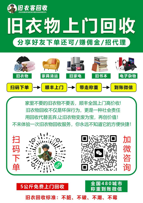 想找一份不占地、不囤货、不花本金的轻创业?想在碎片时间里,既做有意义的事又能稳定赚钱?现在,正爆发的旧衣回收赛道,为你打开 “环保 + 创富” 的双优选择 —— 旧衣回收代理招募火热开启,无需经验、不...