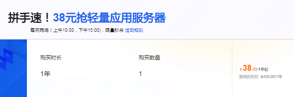 - 38 元秒杀轻量应用服务器:每天上午 10:00、下午 15:00 两场限量开抢!2 核 2G 配置 + 200M 峰值带宽 + 40G ESSD 盘,足够支撑个人博客、小型工具网站稳定运行,新手入门零压力,手速快的朋友直接锁定秒杀价。