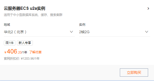 - u2a 实例年终 2.5 折:企业优选配置,算力性能超 u1 实例 40%,2 核 2G 低至 1.12 元 / 天,折算下来一年仅 409 元,初创企业用来部署核心业务,成本直接打骨折。