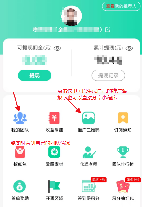 将你的推广码分享到 朋友圈 或 微信群 分分钟就能到100人(只要有人扫了你的推广码,或点了你分享的小程序就算一个人,保守估计分享10个群就够了,非常容易)