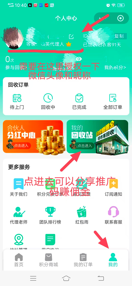 - 用户通过推广码处理旧衣物,代理即可获得对应佣金,后续享受团队收益及分红权益。