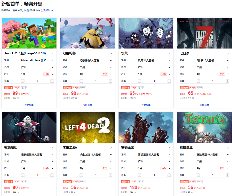 - 📢 全玩家覆盖:不管是首次开服玩《饥荒》的新客,还是想换《战术小队》服务器、续期《七日杀》联机服的老玩家,都能在活动页找到适配套餐;